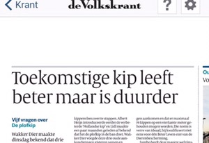 Vanochtend zag ik deze kop met ‘maar’. Hier is het gewoon wreed. Een beter leven voor de plofkip wordt er plots een nadeel door.