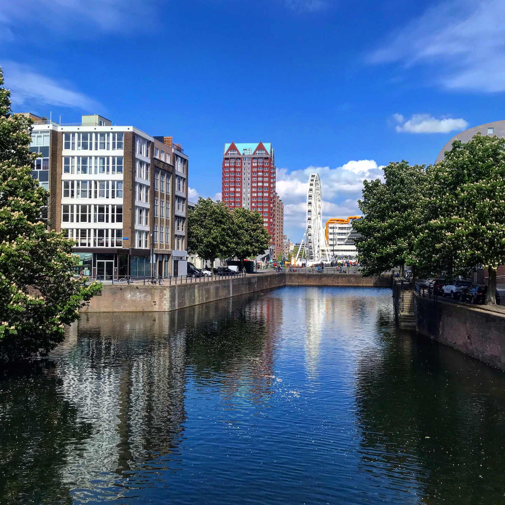 In 15 minuten werd de stad die dat jaar haar 600-jarig bestaan vierde vernietigd. In het boek staat het bekende beeld van de verwoeste Laurenskerk temidden van een kale vlakte waar eerst huizen, winkels en kantoren stonden. Een foto in het boek laat het Steiger zien, niet ver van de Laurenskerk. Toevallig maakte ik daar dit weekend ook een foto, bij het Hang. Behalve het water, de rivier de Rotte waar de stad haar naam aan dankt, is er niets meer hetzelfde.