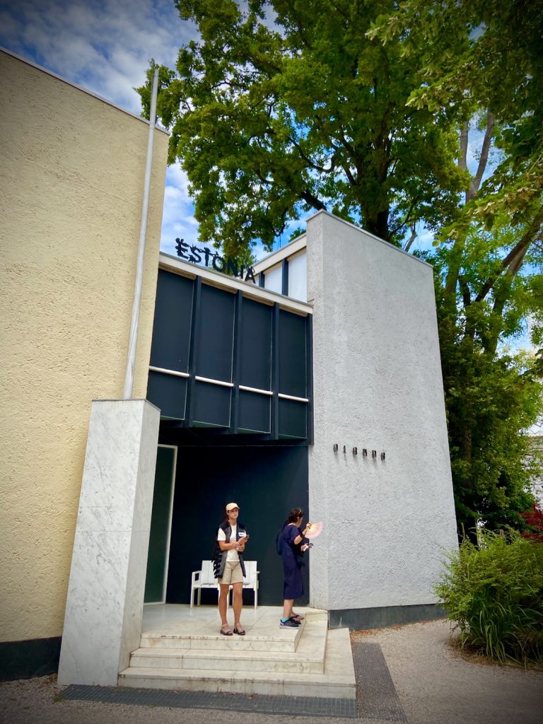De tuin is met al die paviljoens een soort bevroren versie van de oude wereldorde. Om die wat te laten ontdooien heeft Nederland het paviljoen voor een keer beschikbaar gesteld aan een van de vele landen die zich anders nooit zo prominent op de Biënnale kunnen vertonen. Het besluit is al ver voor de oorlog genomen maar Estland heeft de kans met beide handen aangegrepen en presenteert een tentoonstelling waar op briljante wijze alles samenkomt.